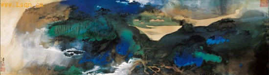 ■2010年5月17日中国嘉德拍卖的张大千[注: 张大千(1899年5月10日~1983年4月2日),四川内江人,祖籍广东省番禺,是一位深受爱戴的伟大艺术家,特别在艺术界更是深得敬仰和追捧,]《爱痕湖》以人民币1.008亿元成交,这也是中国近现代书画首次突破亿元大关。 ↑