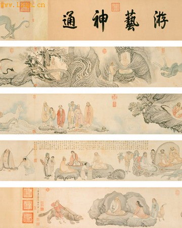 ■2009年11月22日北京[注: 北京有着三千余年的建城史和八百五十余年的建都史,最初见于记载的名字为“蓟”。民国时期,称北平。新中国成立后,是中华人民共和国的首都,]保利中国绘画夜场中,明代吴彬的《十八应真图卷》拍出1.69亿元,当时创下了中国书画的最高价格。 ↑