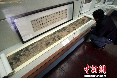 中新网太原9月29日电(李新锁)29日,山西高仿真名家字画展在山西艺术博物馆展出,其中不乏《清明上河图》《富春山居图》等国之瑰宝。众多参观者纷纷表示,高仿字画让普通百姓有幸近距离欣赏国宝字画,非常难得。