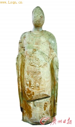 还有一件是北齐卢舍那法界人中像。佛像体形高大,由整块汉白玉雕成,身披袈裟,从佛像胸前到膝部自上而下[注: 自上而下 拼音: 解释: 从上到下。 相关词语 自郐而下自上而下一鼓而下形而下学形而下顺流而下从天而下等而下之而下-zishangerxia]浮雕六道场景,栩栩如生。据说,卢舍那佛像脸形是根据武则天[注: 武则天(624年2月17日-705年12月16日),汉族。中国历史上唯一一个正统的女皇帝(唐高宗时代,民间起义,曾出现一个女皇帝陈硕真),]的脸形雕刻的。在洛阳龙门石窟,在公元672年开凿有规模最大的卢舍那大佛,面部丰满圆润,面容慈祥。可惜中大图书馆内的佛像已被严重破坏,佛像真容如何只能凭后人想象。