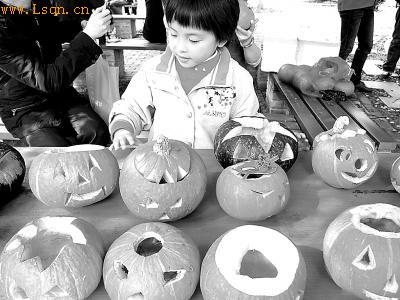 “妈妈,给我买个南瓜蛋糕吧,我要过‘万圣节’。”一个小女孩在蛋糕店门口指着橱窗上的广告图片对妈妈说。这位妈妈疑惑地问女儿:“你知道什么是‘万圣节’吗?”“知道啊,就是外国人的‘鬼节’,这一天要点南瓜灯、要吃糖。”