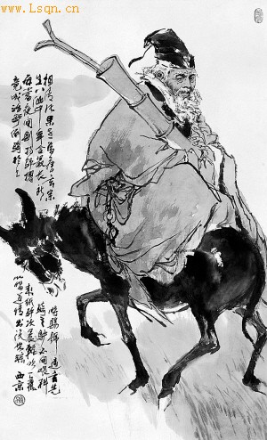 据《唐书》记载,张果老本名张果,缀一个“老”字是对其尊称。他是传说中的仙人,是“八仙”中最年长者。相传他是唐代邢州人,今广宗县张固(果)寨是其家乡。邢台西部有仙翁山,俗称张果老山。张果因得宛丘、铁拐李诸仙道法,获长生秘术,隐居恒州中条山,往来汾晋间,唐武则天[注: 武则天(624年2月17日-705年12月16日),汉族。中国历史上唯一一个正统的女皇帝(唐高宗时代,民间起义,曾出现一个女皇帝陈硕真),]时已数百岁。武则天曾遣使欲召见之,佯死不见,后人复见其居恒州山中。好神仙的唐玄宗数次召见他,求长生不老之法。待见到张果老时,却见此人老态龙钟,顿生疑惑:“先生是得道之人,为何发疏齿落,老态龙钟?”张果老说:“我是齿落发稀时得道,只好这副光景。陛下若看着不顺眼,我不如把它们尽去了好。”于是便在殿前拔去鬓发,击落牙齿,玄宗有点害怕,忙叫人扶张果老去休息。过了一会儿张果老回殿,果然容颜一新,青鬓皓齿,胜似壮年。张果老自称“生于尧时丙子岁,位侍中。”张果老从尧活到了唐玄宗时期,算算他该有多大一把年纪!张果老常倒骑驴,日行数万里,有趣的是,到达目的地后,便将这驴折纸般折叠起来,藏于巾箱,乘坐时则取出,吹口法气,便又幻化成真驴。唐玄宗曾授以银青光禄大夫[注: 战国时代置中大夫,汉武帝时始改为光禄大夫,秩比二千石,掌顾问应对。隶于光禄勋。魏晋以后无定员,皆为加官及褒赠之官:加金章紫绶者,称金紫光禄大夫;加银章紫绶者,称银青光禄大夫。],赐号“通玄先生”。他的故事,最早见于《明皇杂录》、《旧唐书》、《新唐书[注: 《新唐书》-《新唐书》记载中国唐代历史的纪传体史书。二百二十五卷,包括本纪十卷,志五十卷,表十五卷,列传一百五十卷。北宋宋祁、欧阳修等撰,宋仁宗嘉祐五年(1060)全书完成,由曾公亮进呈。]》方技卷等。