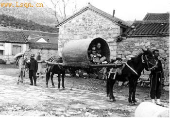 子骡轿是民间小康人家的代步工具,摄于1909年。