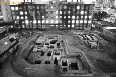昨日,万寿路地质力学研究所内,刚出土的太监墓群。记者 李飞摄