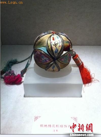缎地绣花形球饰件 盛捷 摄