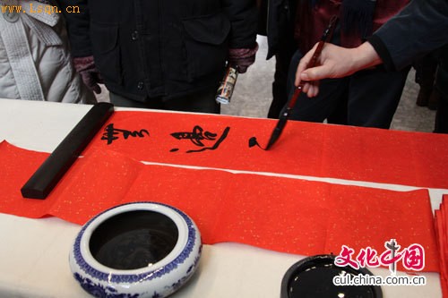 展览开幕当天,由首都博物馆、北京市书法家协会、北京市文学艺术界联合会联合举行的“首都书法家书写北京精神”活动,就是春节系列活动的第一步,由三十位北京书法家现场书写与“北京精神”相关联的名言、警句、诗词、歌赋、楹联,并现场赠送给观众,为北京市民送上新春贺礼。