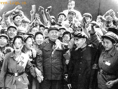 毛泽东[注: 毛泽东(1893年12月26日-1976年9月9日),字:润之,笔名:子任,曾用名:二十八画生、李德胜,国际共产主义运动卓越的领导者,政治家、军事家。]、林彪与红卫兵小将合影(资料图)
