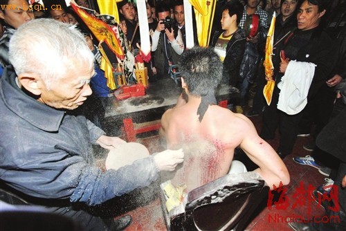 福建莆田元宵习俗:坐刀轿 铁球甩打脊背(5)