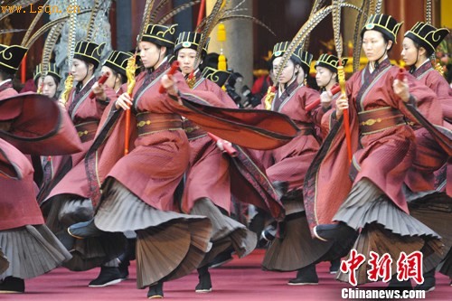 2月26日,台北孔庙举行春祭典礼,首次由女学生执礼,市长郝龙斌担任主祭官与各界人士民众参加儒家盛事。中新社记者 贾国荣 摄
