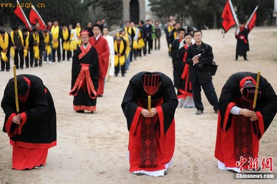 在祭祀现场,除敬献祭品、恭读祭文外,还进行了汉礼展示。有关专家称,此次汉代皇家宗庙礼制中的“巡陵祭”,旨在弘扬中国传统文化,传承古老民俗礼仪。