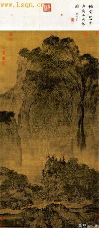 中国北宋画家范宽的绘画代表作品。画幅上诗堂处明董其昌题“北宋范中立溪山行旅图”。《溪山行旅图》历来被称为范宽的代表作,树叶间有“范宽”二字题款。历代评论家对此画称赞备至。徐悲鸿[注: 徐悲鸿(1895年7月19日-1953年9月26日),生于中国江苏宜兴屺亭桥。中国现代美术事业的奠基者,杰出的画家和美术教育家。]曾高度评价此画:“中国所有之宝,故宫有其二。吾所最倾倒者,则为范中立《溪山行旅图》,大气磅礴,沉雄高古,诚辟易万人之作。此幅既系巨帧,而一山头,几占全幅面积三分之二,章法突兀,使人咋舌!”