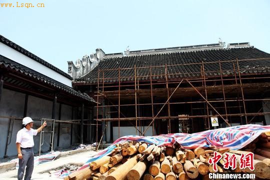 在桃花坞片区内的准提庵、唐寅祠整修现场,桃花坞发展建设有限公司副总经理曾身涛在第三进楼厅介绍说,这里正[注: 战国时秦国居民区一里之长。封建统治者为了巩固专政,在县级以下,设立了有乡和里,其中一“里”单位的长官为里正。-lizheng]在进行“不落架维修”,凡是可以利用的老构件,都继续保留,只有实在已腐烂、损毁的构件,才予以替换,他表示“文物维修中,旧东西都是宝贝”,如真有网络图片上那么精美的“古建构件”,不可能会拆掉。
