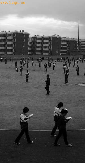 《中国门》剧照,甘肃[注: 甘肃省-甘肃省位于中国中部偏北。简称甘,又简称陇。介于北纬32°36′~42°47′,东经92°10′~108°43′。]省会宁[注: 位于甘肃中部。北与白银市平川区、靖远县接壤,南与定西市通渭县毗邻,西连定西市安定区、兰州市榆中县,东靠平凉市静宁县和宁夏固原市西吉县、中卫市海原县。]县一所高中里,晚饭后的学生在操场上背书。