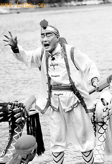 胡振浩老人在表演峡江船工号子。郑坤摄