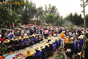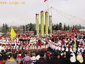 时间过去了30多年,我早已从云南那个小山村来到了北京,上学、工作、生活,儿时的记忆很多都已渐渐淡远,直到前年我回家乡,又一次赶上了 “开春节”。不过这次已经不用化装了,现在的“开春节”,男女老幼都能参加,大家穿上民族的盛装,一起唱歌跳舞,一起拉弓射箭,少男少女们谈情说爱,大家吃肉喝酒,一派欢乐祥和的节日气氛。