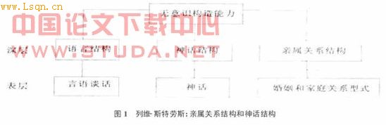 列维-斯特劳斯曾对亲属关系作了大量调查,最后发现亲属关系有两层结构:表层结构由兄弟、姐妹、父子、舅舅和外甥等亲属关系构成,深层结构则由最简单的婚姻关系构成。[8](P206)此外,他还对神话的结构进行了类似的分析。列维-斯特劳斯对亲属关系结构和神话结构的分析结果,可以用图1来表示。