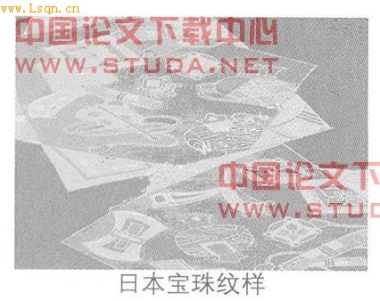 纹样”(约公元前4——公元前5世纪绘制),双腿交叉的弥勒佛,背面壁画上有裸露上半身,飘带飞扬,向菩萨献舞。敦煌纹样是中国传统纹样新的创造,是中国从魏晋至宋元各个历史时期纹样展示长廊,在世界上享有极高的艺术声誉。 此外,出现了“迦陵频伽”纹样在中国佛教史上享有崇高的地位,相传是一种长在雪山中的神鸟,能发出美妙的声音,被佛教界人士神化为极乐世界的鸟。而中国这种纹样造型上更像人,尖耳、人面,唐时期佛像壁画、石刻、镜子、陶瓷中多见。 二、佛教影响下的日本纹样 1.丰富了日本纹样的内容 日本纹样中也首次出现了“迦陵頻伽”纹,这种纹样是一种全新的形象,是受佛教影响下的一种鸟的形象,美女的头,手持供物,鸟身的形象。这种鸟会发出悦耳的鸣叫声,被视为是舞乐的祖先。  日本飞天纹样的出现:与中国一样,日本在佛教传入的同时,印度和中国的飞天,在飞鸟时代传入日本。法隆寺金堂的“树下飞仙图”(公元7世纪-公元8世纪)如来佛基座背面的壁画,用单纯的黑色描绘飘洒流畅于林间的飞天。 孔雀(Peacock)纹样:中国秦朝时期便在石刻中出现了孔雀纹样。经过发展,常与牡丹花等共同描绘,象征富贵,也是一品官员服饰纹样;日本人首次见到孔雀纹样是在从中国传入的佛教艺术品中。孔雀漂亮的羽毛,美丽的姿态受到日本民族的广泛地喜爱,并很快的被接受了。江户时代孔雀纹样更为写实,采用孔雀纹样中的一部分,出现了“孔雀羽纹”。 2.佛教赋予日本族纹样以新的概念 日本传统宝珠纹样(Hoju)描绘的是现实中有价值的东西,宝石、钥匙、小槌棒、钱袋、斗蓬和竹笠等。佛教传入后,宝珠纹中出现了伞,瓶、金鱼、莲、剑、法轮和犀牛等新内容。日本的传统人物纹样在日本神道的影响下,也习惯于把神表现为人像。神体用镜、剑和如意三种神器抽象和隐喻地表示。神道世界融合了中国传来的佛教,创造了具有大陆根源的宗教意义的人物纹样。例如:著名的法隆寺的“玉虫厨子”(日本国宝,飞鸟时代工艺品)。在“玉虫厨子”上雕刻着“释加舍身救虎子”的各种形态;还有日本的最古老的染织品“天寿国刺绣”,表现圣德太子殁后,王妃“桔大”思念太子遗德,太子在天寿国往生极乐的样子,它们都是人神,神人相互转换的形象。 3.佛教思想影响下的日本纹样表现手法 佛教体系的审美意识体系与社会政治生活和伦理道德紧密相关,在自然风景纹样中,出现了残月和薄雾等清冷和雅致的纹样,其色彩多是淡彩素色。从纹样中寄托人的忧郁和寂寞之情,宣泄悲哀的情绪。 纹样本身是一个开放的系统,对于任何一个民族的纹样都会或多或少的吸收其他民族的纹样,来丰富自己的纹样艺术。除此之外,还会不断地受到新文化与不同意识观念的冲击而更新拓展,它的内涵与精神则是民族历史长期积淀的结果,是民族所特有的,也是民族形式的灵魂之所在。中国和日本对外来纹样的传承,均不是简单模仿和挪用,而是融合了自身的文化,推陈出新,推动民族传统纹样的不断发展。
