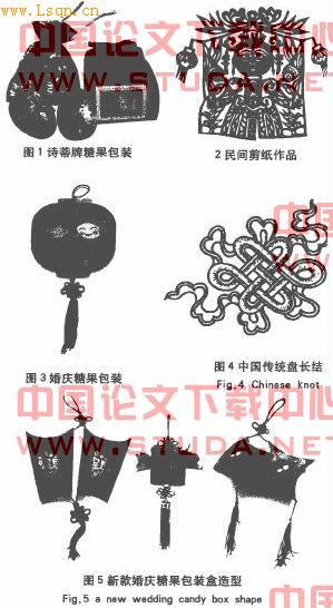 民间灯彩五花八门,是采用多种材料、多种工艺、多种装饰技艺相融合的民间综合艺术。民间灯彩的造型有圆形、椭圆形、套方形、花篮形、鱼形、瓶形、葫芦形、套环形、亭台形等,这些造型都有其自身的喻意。如图3,是运用民间灯彩中最普遍的圆形作的糖果包装纸盒造型,这小小的面灯,寄予了人们吉祥如意的美好愿望,包装画面利用两个微笑的新娘和新郎的图案,便增加了糖果包装设计吉祥、喜气的特色。 中国民间绳结作为中国一绝被世人誉为“中国结”。中国结的特点是:每一个结从头到尾都是用一根丝绳,通过始终不断、顺理成章地穿梭、缠绕,没有正反、左右对称、首尾相接、无始无终的结饰。这种独特的艺术造型本身就象征着生命的连绵不断,包涵着大千世界中万物众生的自然规律,蕴蓄着和平、圆满与吉祥。中国结中运用非常广泛的形式是盘长结,盘长是佛教传说中的宝物,作为八吉祥之一,人们视它为吉祥之兆,在中国传统装饰中运用非常广泛。盘长表示回贯一切,是长寿、无穷尽的象征。Isl图5,婚庆糖果包装既运用了双数的包装盒造型,把两盒用绳结来进行联结,可以借助于双心相联的这种形式来表达人们一种对于幸福吉祥的美好愿望。另外,民间绳结作为提手,开启捆扎,又能起到装饰和点缀画面色彩的作用。在丰富商品的文化价值,展示民俗特点上能起到很好的装饰效果,增添了文化韵味和形式美感,极具艺术特色。 民间流传着四喜歌:久旱逢甘露,它乡遇故知,洞房花烛夜,金榜提名时。人们把结婚作为人生四大喜事之一,其其“蔡”这样的吉祥符作为一种吉祥文化一直流传至今。u”符表达的是双喜的意思,即喜上加喜。把“蔡”用作圆形的图形来表现,表达着圆满,团圆的意思。在民间传统文字图中,有很多运用圆形来进行的设计。图8的龙凤的纹样,图7的“G Aii”符构图,很好的追求画面的圆满、完整、对称、稳重的艺术效果,有着独特的形式美感,表达了人们对于美好事物的向往与追求。图6,把“蒸”符作为一个设计元素进行设计,整个设计即符合现代设计简洁大方的要求,又有浓郁的民俗特点。 当然,民俗文化是一定时代和历史条件下的产物,在审美情趣、生活习惯和思想感情毕竟发生了很大的变化,如果不顾现代社会的变上一页 [1] [2] [3] 下一页