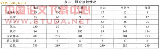 从接触频度来看,在各媒介类型中,电视遥遥领先。如果我们把衡量接触度的选项设为:几乎每天=5,经常=4,有时=3,偶尔=2,从不=1。平均得分为所有有效样本的加权平均,平均得分越接近5,表明总体接触频度越高,反之代表接触频度越低。经过计算,可以得出各媒介接触度平均分为报纸:2.17;电视:3.67 ;广播:1.63;杂志:2.30;互联网:1.86;书籍:1.65。媒介接触程度依次为电视>杂志>报纸>互联网>书籍>广播(参见表二:媒介接触情况)。