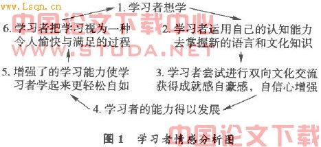 依照对于学习者情感分析的框图,可以设置出如下推论:如果能使学生在英语的双向文化交流中以主体身份添加进本土文化内容,进而看到祖国文化得到了客体的认可与赞美,他们会获得成就感并进入学习过程的良性循环,如图1所示。